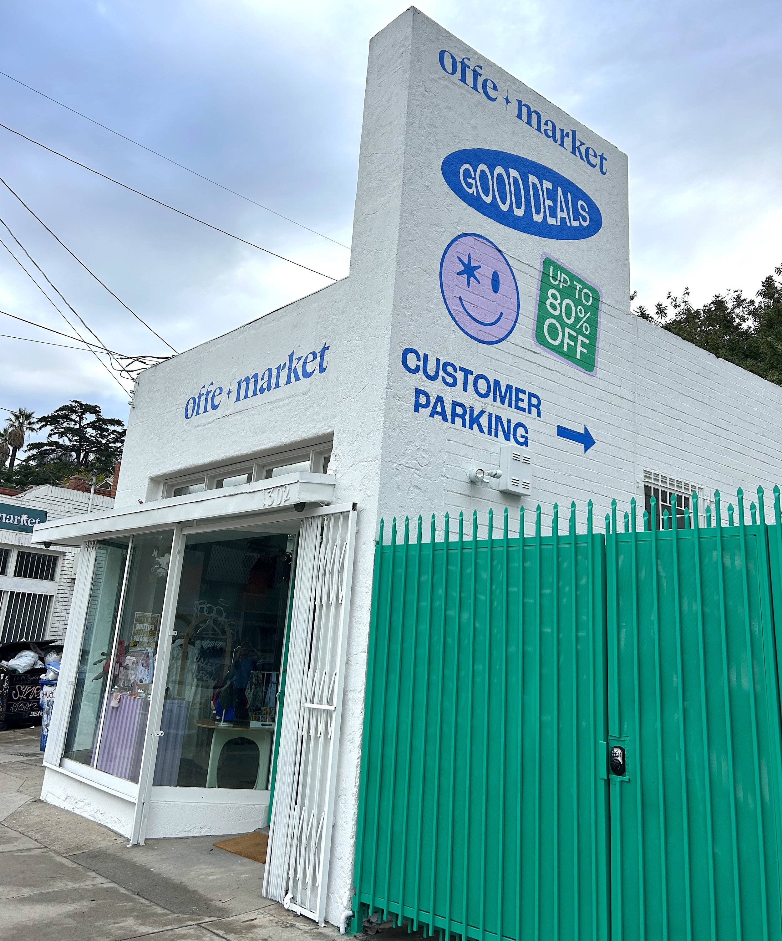 I painted the storefront of Offe Market in Los Angeles which included a giant smiley face, their front facade sign, large promo sign, and Customer Parking sign.