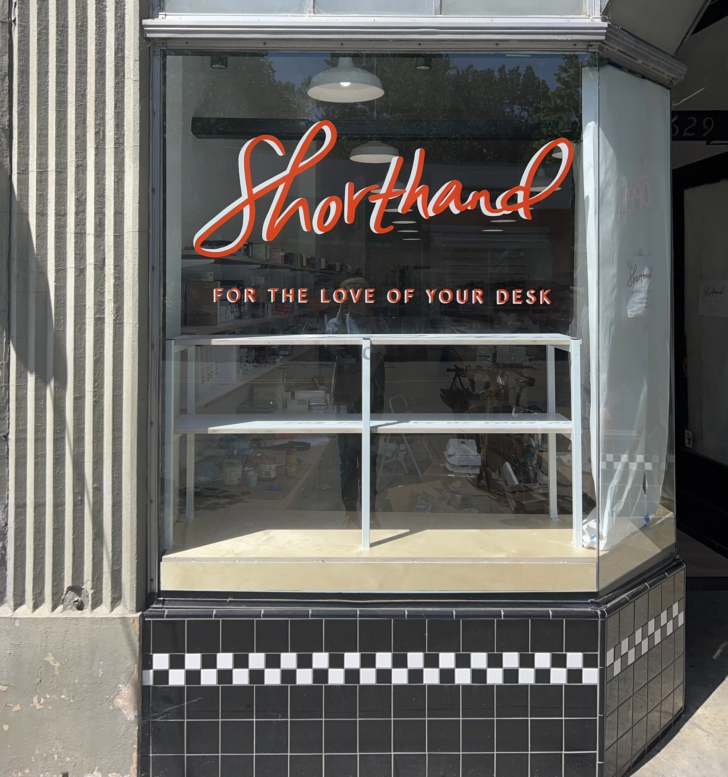 I painted a window sign, open/close sign, and two interior door signs for the stationery store Shorthand at their newest location in San Anselmo.